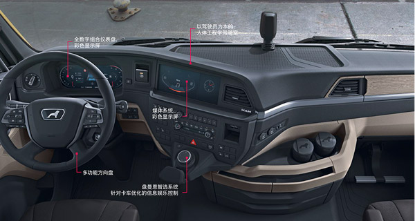 全新一代曼恩卡車的信息娛樂系統(tǒng)具有廣播(標(biāo)準(zhǔn)模式和數(shù)字模式)、電話以及更多為卡車量身定制的功能,是一個通信和多媒體中心。